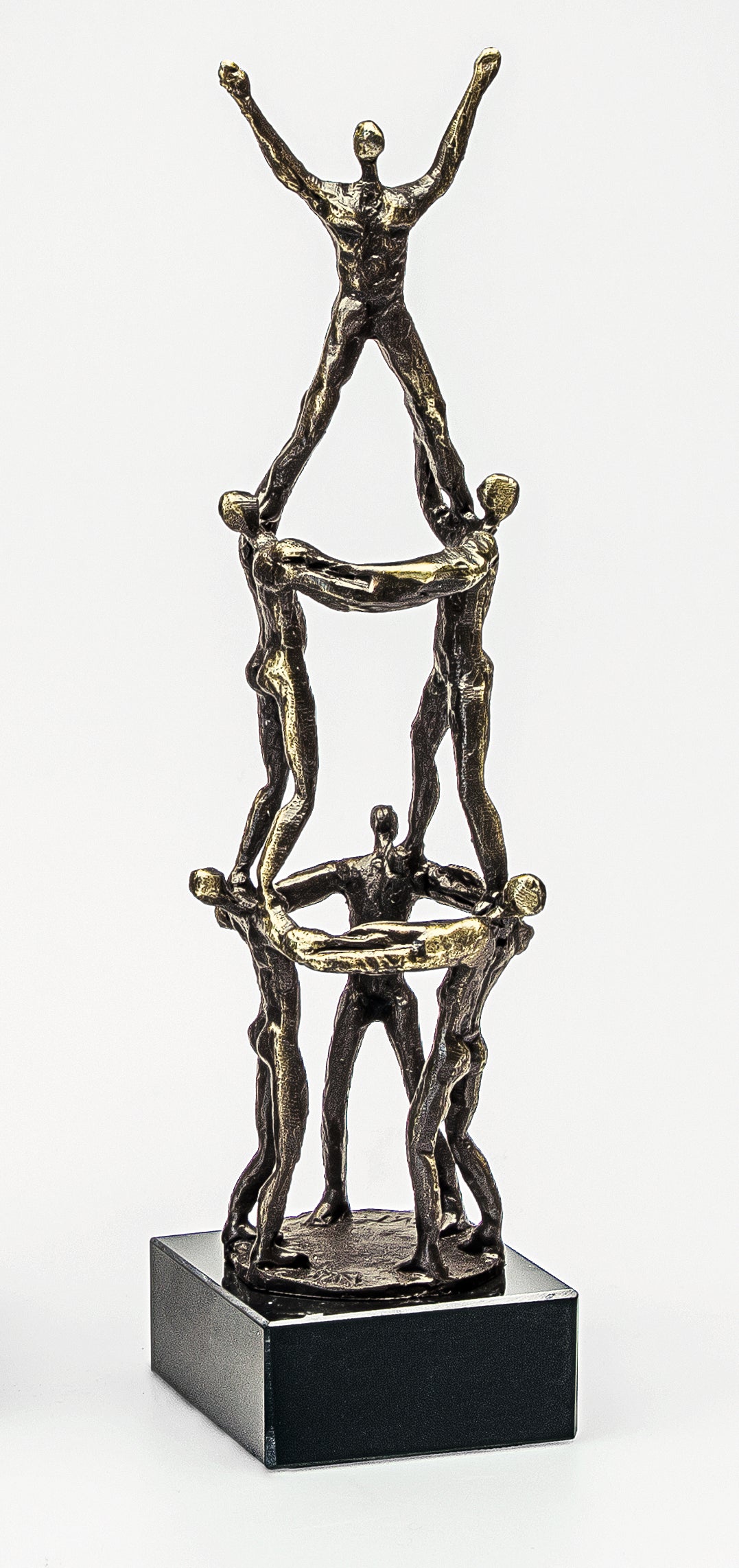 Un groupe fort : ensemble, on peut réaliser ce qu'un individu seul ne pourrait jamais accomplir. Fonte métallique avec surface bronzée sur socle en marbre noir. Dimensions : 26 x 6,5 x 6,5 cm (H/L/P). Poids : env. 0,7 kg.
