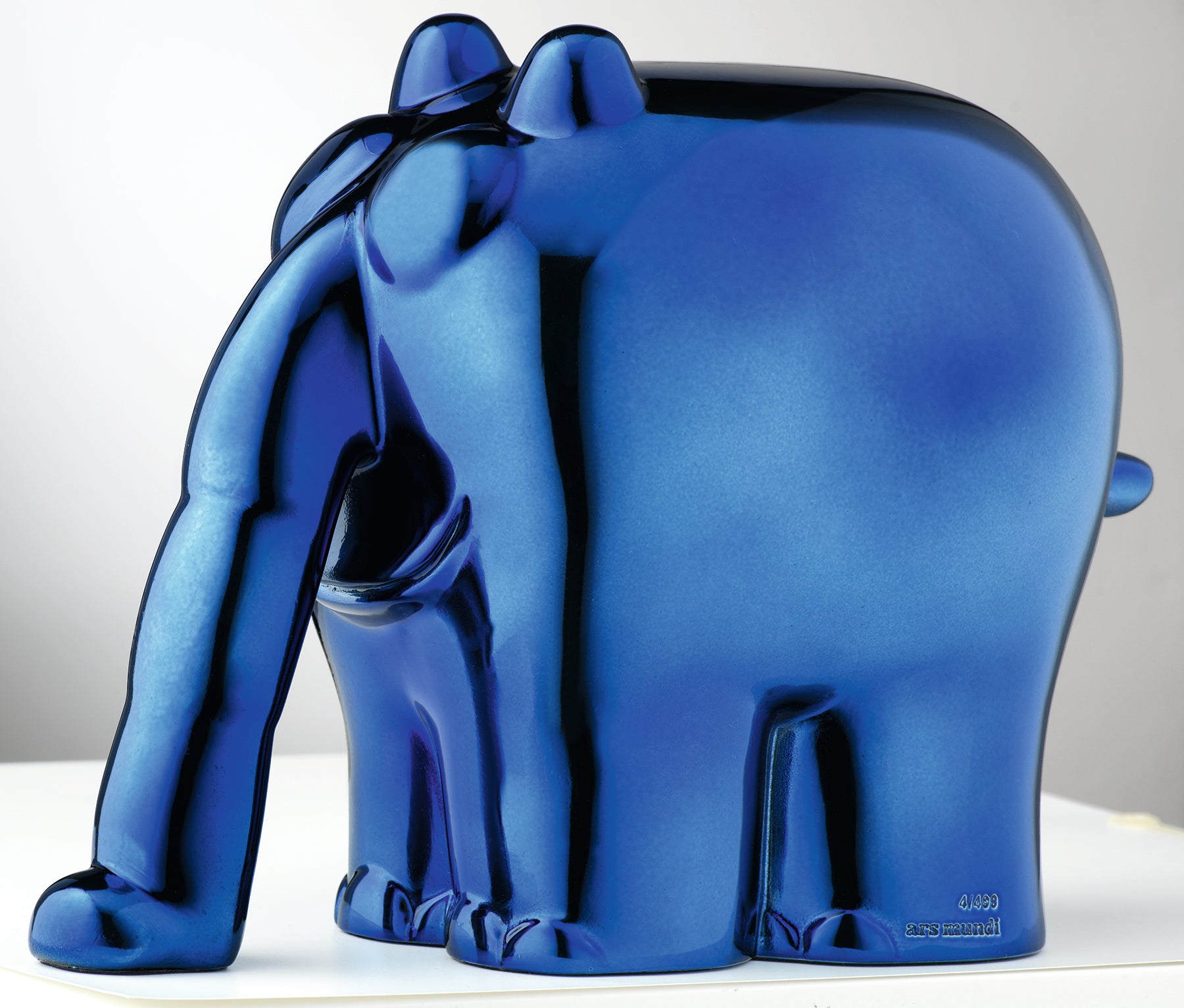En exclusivité chez ars mundi : sculpture du célèbre Ottifant en fonte d'art avec finition métallique brillante. Édition limitée à 499 exemplaires, numérotés, signés et estampillés du cachet ars mundi. Avec certificat d'authenticité et de limitation numéroté. Format 21 x 14 x 29 cm (H/L/P). Poids env. 6,4 kg. En argenté métallique ou bleu métallique.