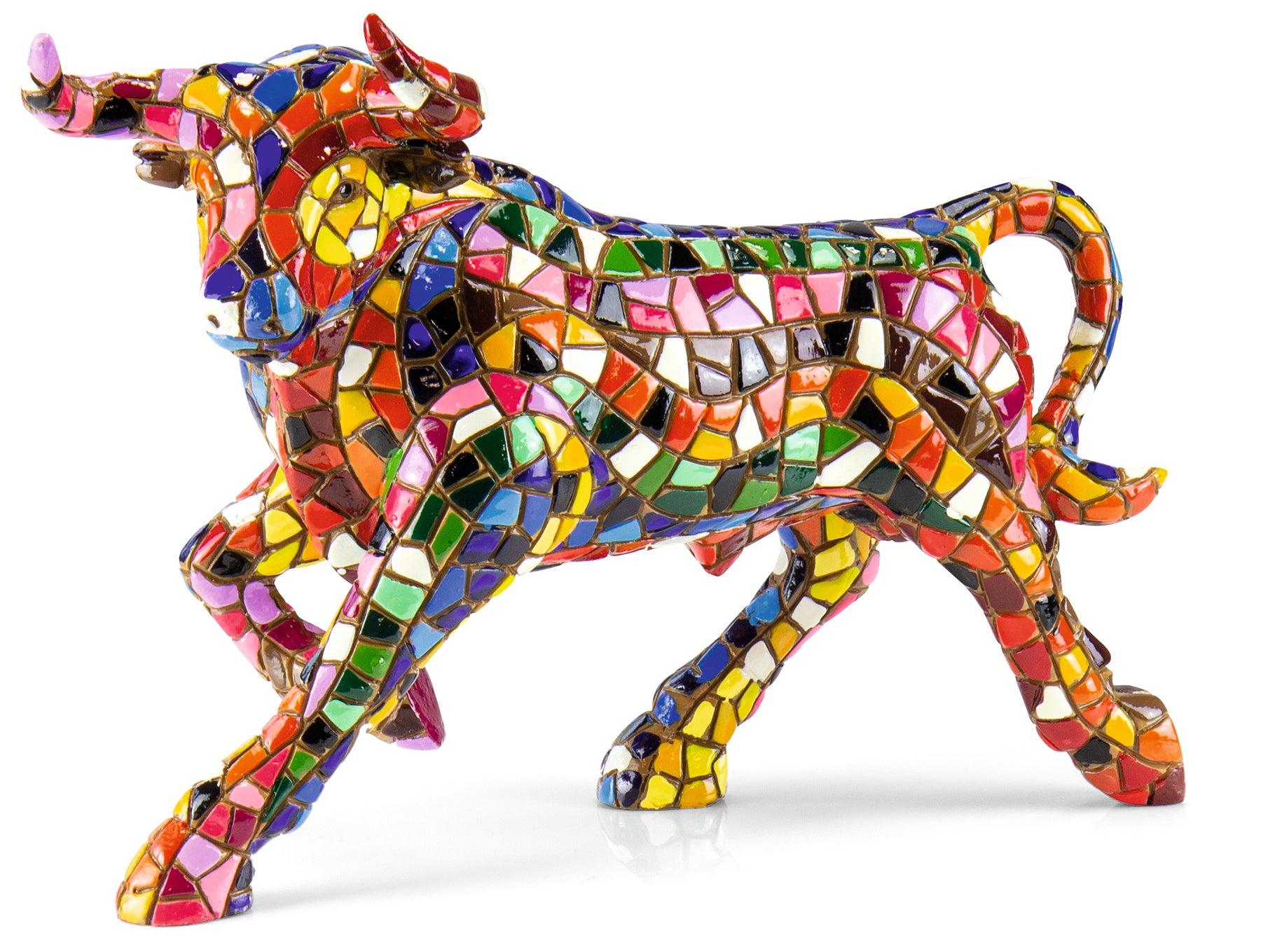 Ce taureau est clairement inspiré par Gaudi. Avec ses « trencadis », des mosaïques composées de morceaux de céramique, il a rendu son architecture immortelle. Sculpture animale en polyrésine dans le style typique « trencadis ». Dimensions : 16,5 x 24 x 10 cm (H/L/P).