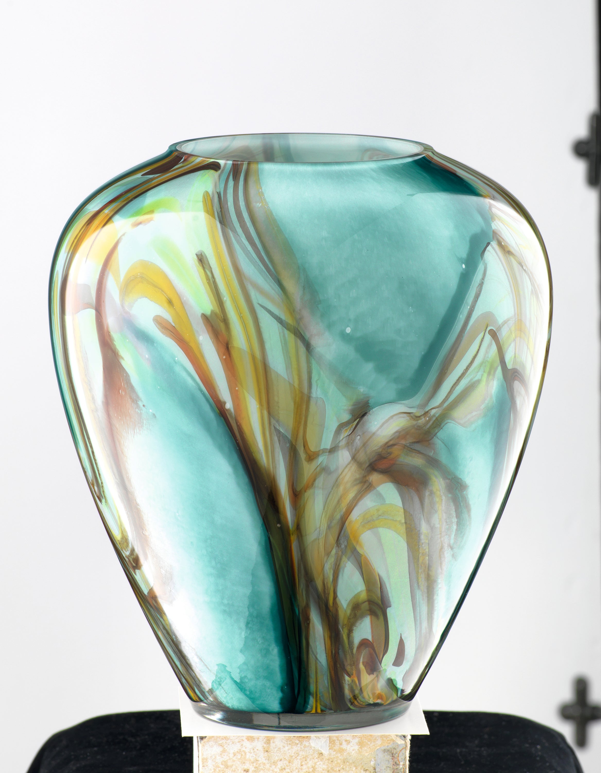 La verrerie Loranto crée des œuvres d'art en verre exceptionnelles aux formes élégantes et aux couleurs magnifiques. Les petites bulles d'air et les irrégularités témoignent du travail minutieux réalisé dans la plus pure tradition artisanale. Hauteur 28,5 cm. Diamètre 23 cm. Poids env. 3 kg.